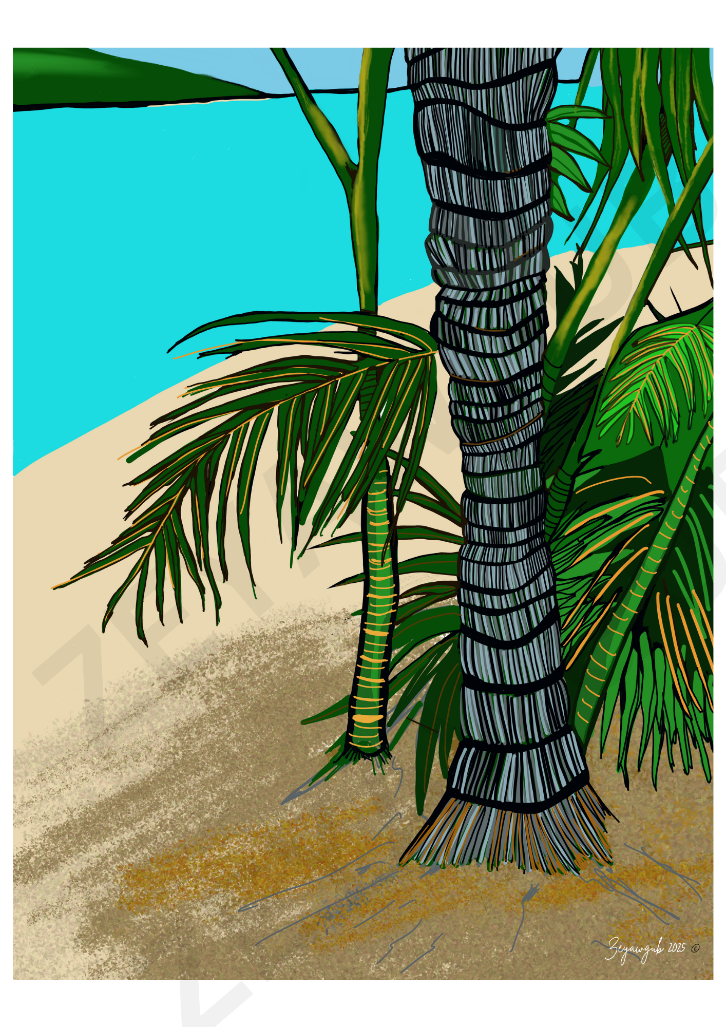 Beachfront is a vibrant piece that showcases the stunning beauty of the Torres Strait Islands, where turqoise waters reach stark white beaches.
